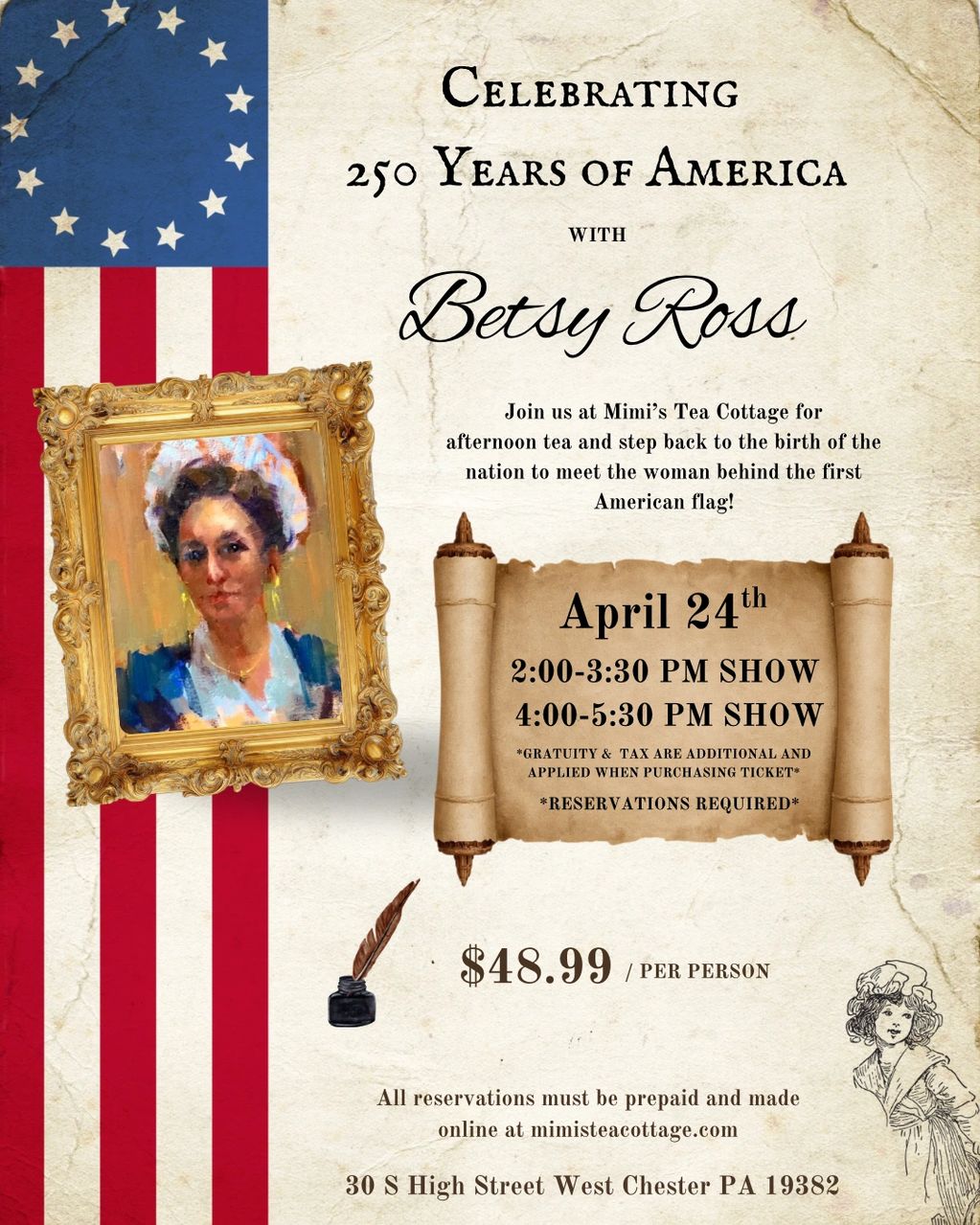 Join us at Mimi's Tea Cottage for an afternoon tea and step back to the birth of the nation to meet the woman behind the first American Flag!